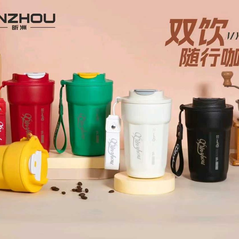 昕洲XZ-7803 咖啡保温杯450ml 创意时尚双饮随行杯 商务活动礼品