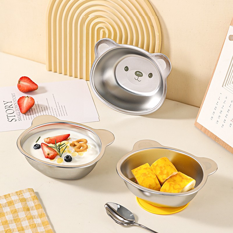 食品級304ステンレスのかわいい子供の茶碗の赤ちゃんの吸盤の専用の補助食品の小さい碗の食器の赤ちゃんの食器