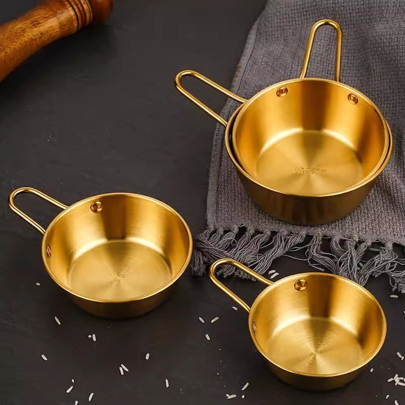 韓国式304ステンレスの米酒の碗isn米酒の碗は碗の韓国料理の碗の金色の取っ手の碗の調味料の碗を持ちます。