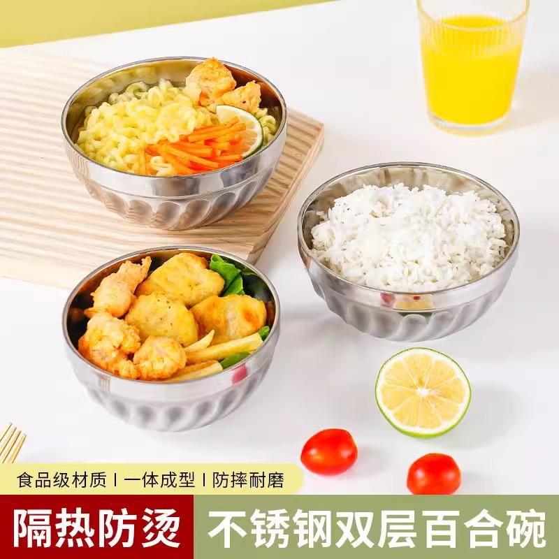 ステンレスの碗の食堂のご飯の碗のスープの碗の子供の2層の断熱の碗の家庭用の熱を防ぐことができます。