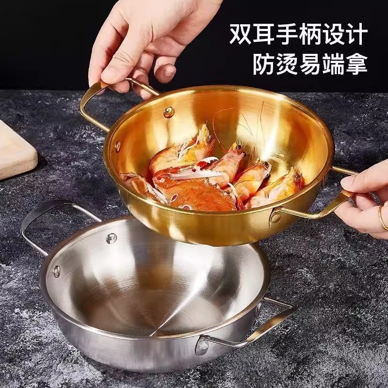 韓国式カップラーメン鍋ステンレススープ鍋双耳金色ラーメン鍋海鮮鍋厚手部隊鍋家庭用煮麺鍋
