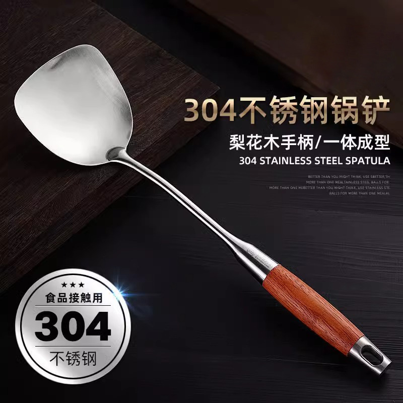 スパチュラ 304 ステンレス鋼調理スパチュラ揚げスプーン延長家庭用ロングハンドルローズウッドスプーン火傷防止ザルスープ用