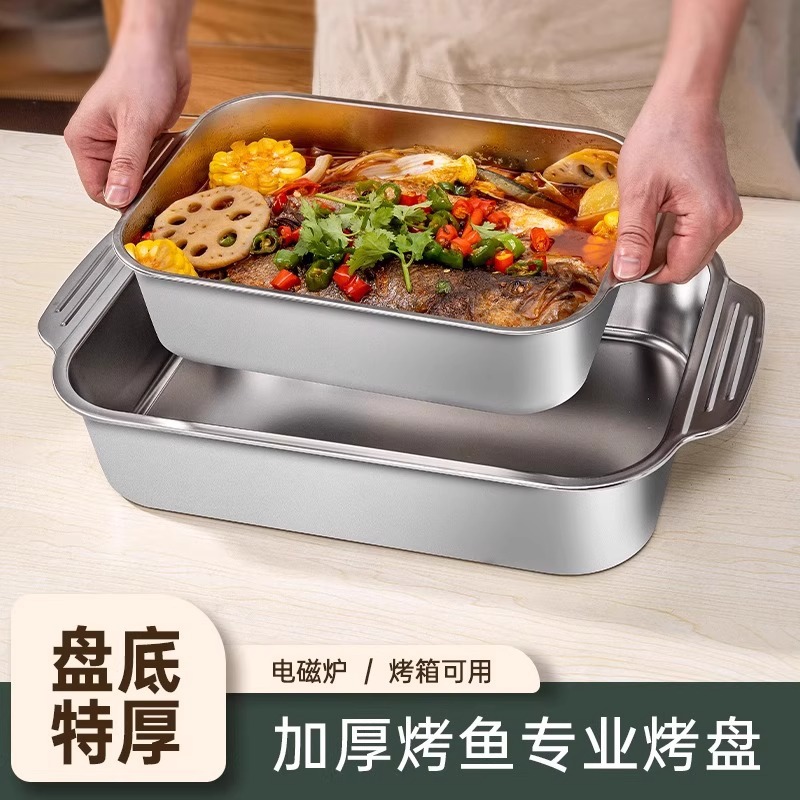 焼き魚プレートステンレス鋼長方形家庭用新しい食品グレードの厚みのある電磁調理器焼き魚特別なノンスティックベーキングプレート