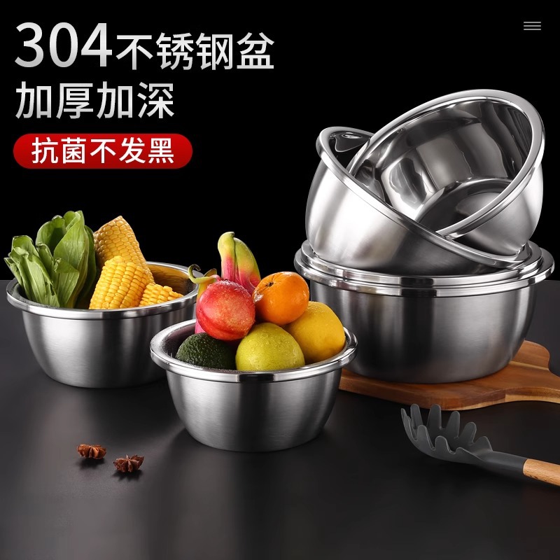 食品級304ステンレス植木鉢家庭用台所卵と麺スープ盆の野菜セットのバスケットのトランペットが厚くなった