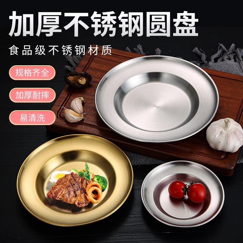 ステンレスの厚い金色の円盤の果物のトレーの料理の皿の韓国式の復古の焼肉の皿の洋食はサラダの皿を深めます。