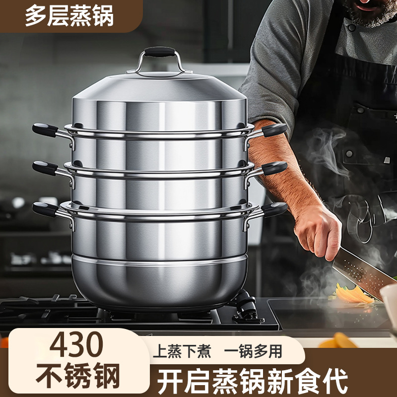 定時多機能蒸煮一体鍋家庭用蒸し鍋ステンレス厚さ多層煮蒸し器ガスコンロ専用