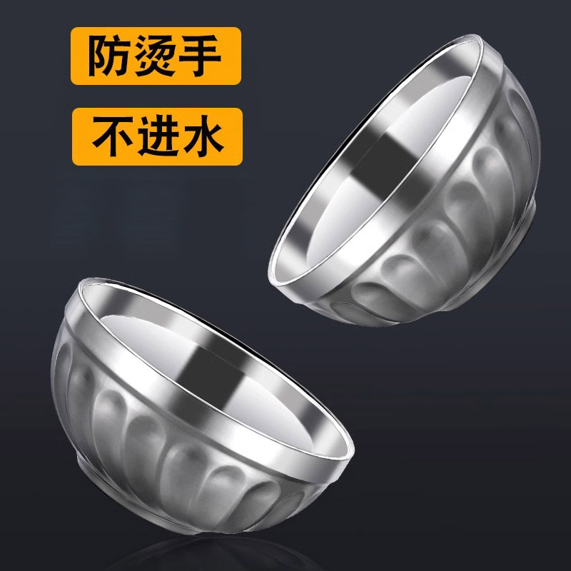 ステンレスボウル二重断熱ボウル家庭用成人ご飯ボウル彫刻食堂ボウル子供スープボウル商用