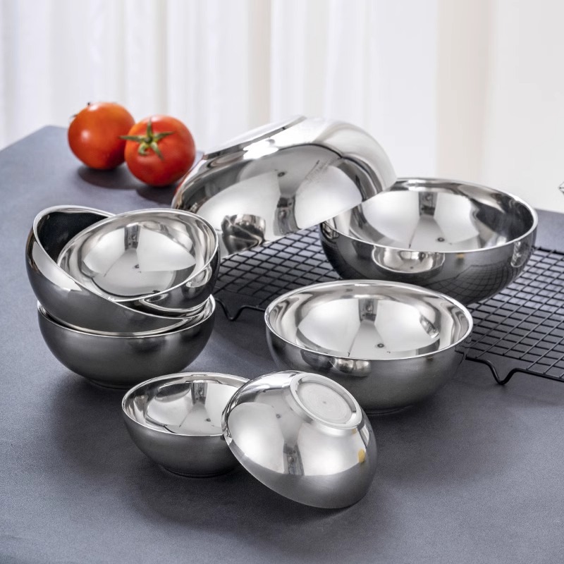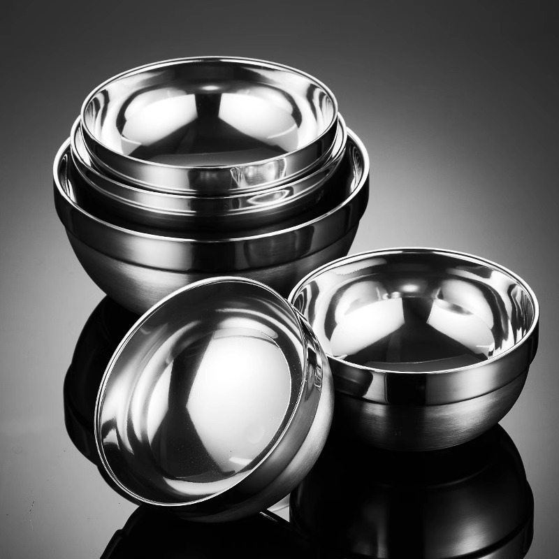 ステンレスボウル家庭用食品級二重スープボウル転倒防止ご飯ボウル学生食堂食事ボウル