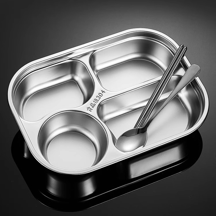 食品級304ステンレスファストフード盤成人児童幼稚園分格飯盤食堂食事盤
