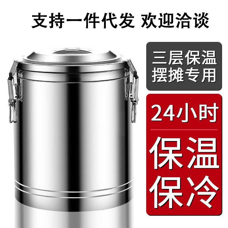 ステンレスの業務用保温桶に屋台を置くための大容量の氷粉豆乳の食事桶は氷の保温箱のスープ桶を出します。