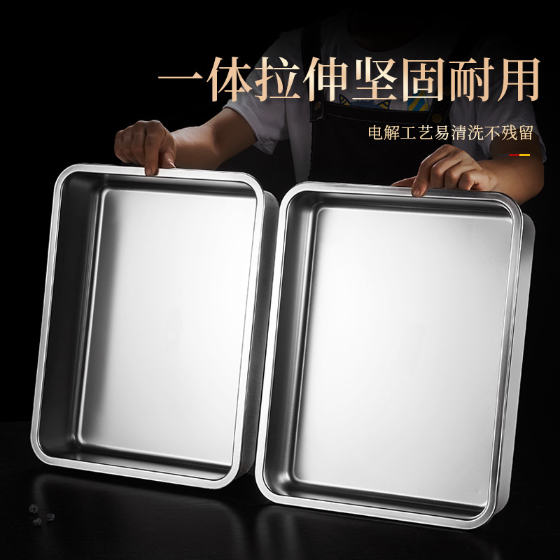 ステンレスの四角いたらいの長方形のトレーを厚くして、たらいの調味料のたらいの鉄の皿の蒸し料理の皿の平皿の四角い箱の焙煎の鋳型を厚くします。