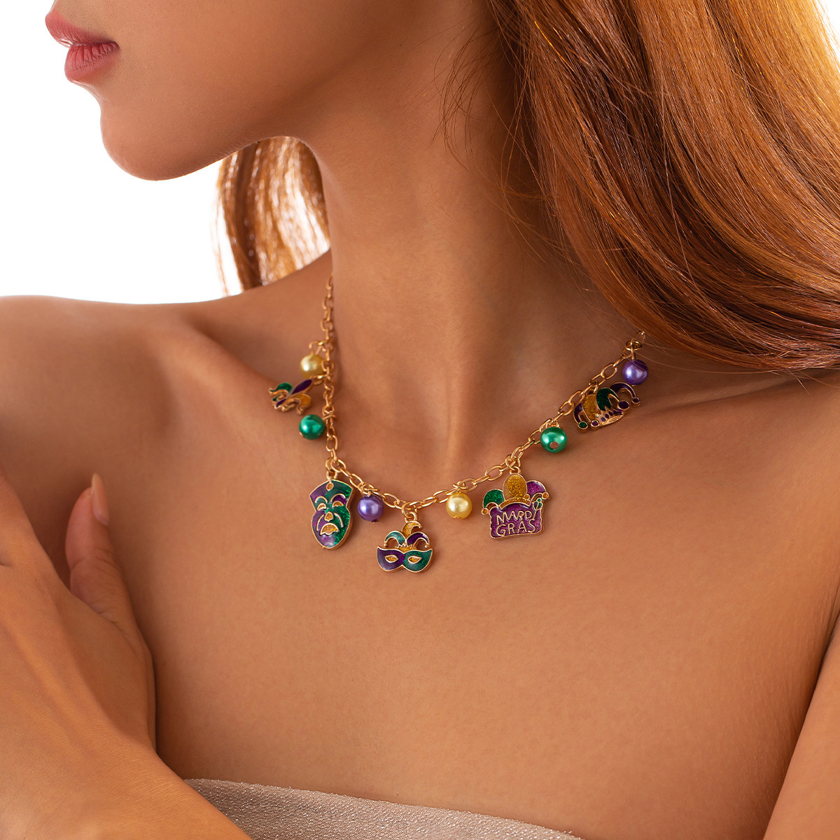 欧米の国境を越えた装飾品カーニバルマスク真珠十字チェーンネックレス高級感合金Necklaceセット