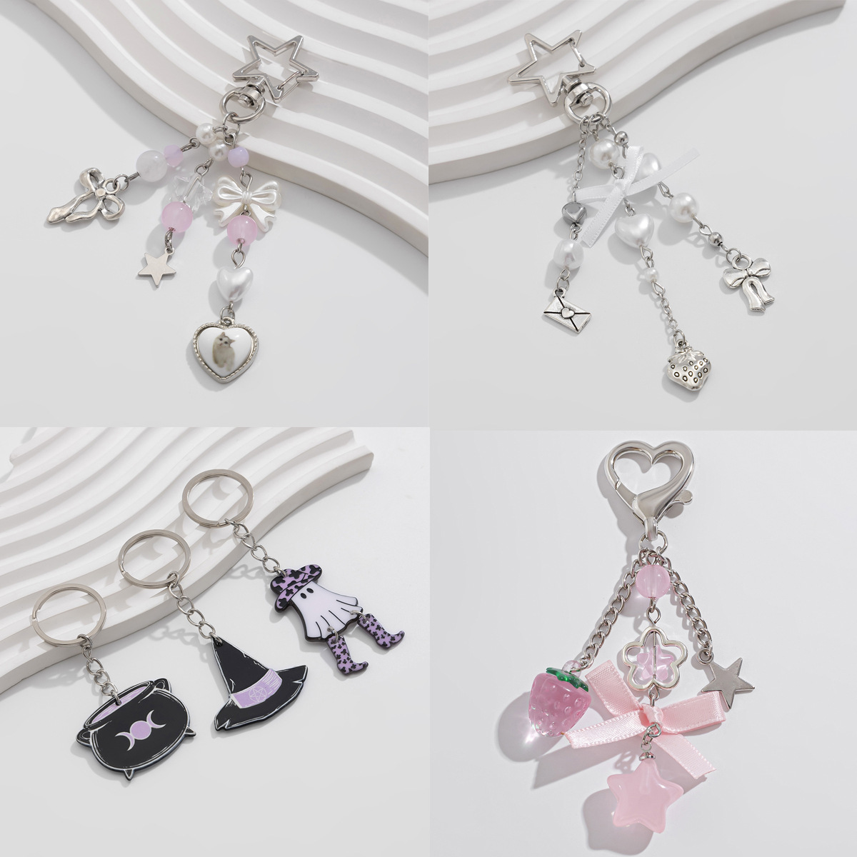 欧米のクロスボーダーのアクセサリの小さい清新な蝶結びの特密なチェーンのキーホルダーの5角星の合金のガラスの玉のペンダント