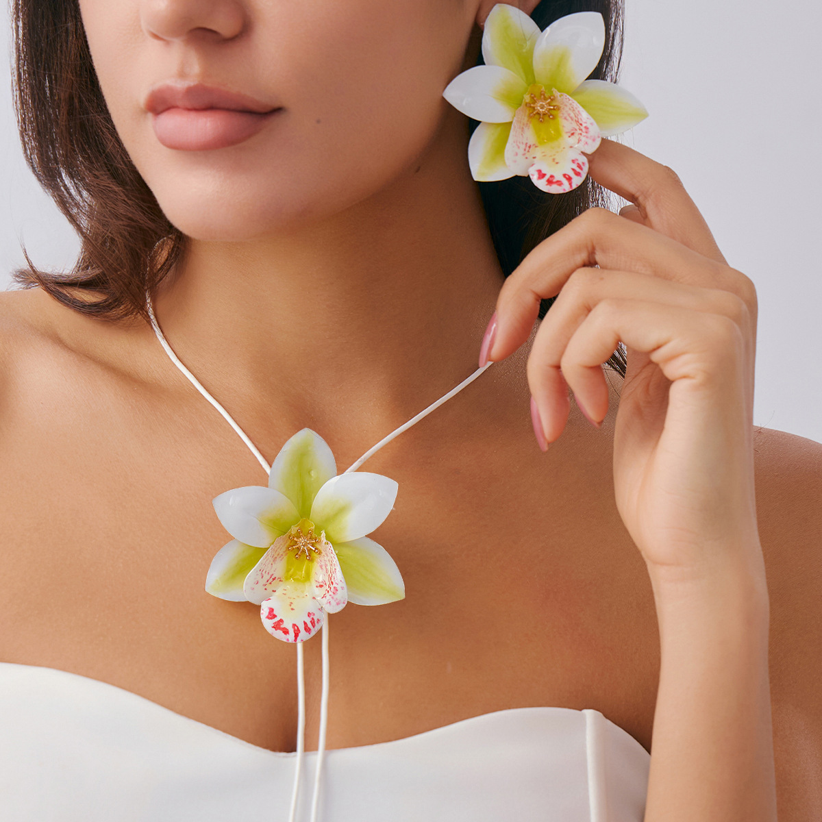 ヨーロッパとアメリカのクロスボーダーファッション立体模擬フラワーネックレスチョーカーパーソナライズされたロングワックスライン生地フラワーネックレス