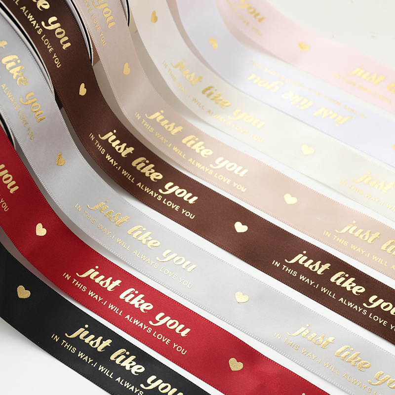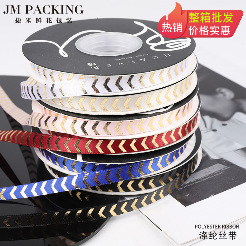 花リボン愛ポリエステル箔押しリボン全箱卸売り花芸花束花リボン花包装材料