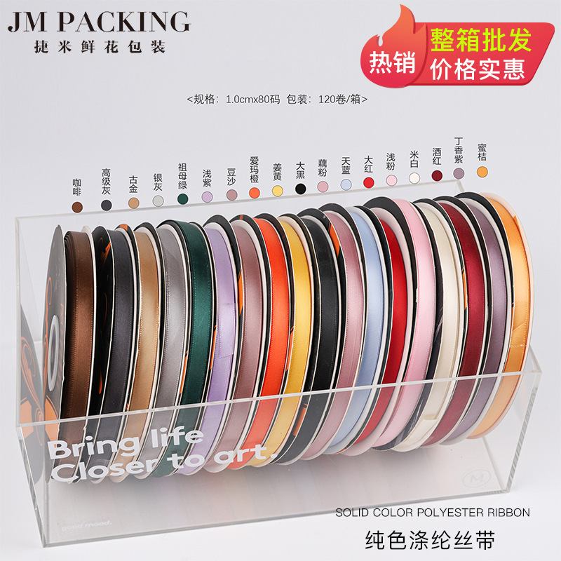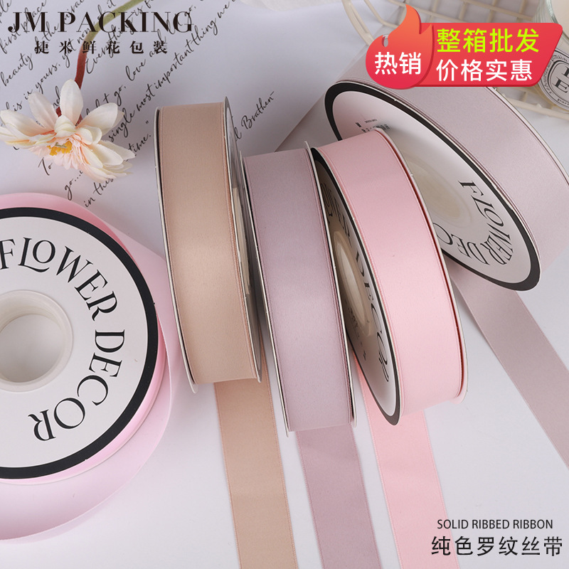 花リボン純色両面ポリエステルリボン2CMフルケース卸売り花芸花束花リボン花包装