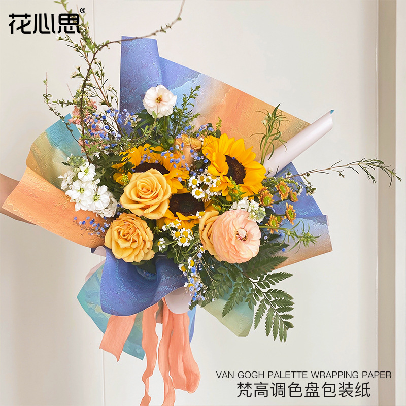 包装紙創意花芸花束紙韓国式insゴッホ油絵パレット復古生花包花紙材料