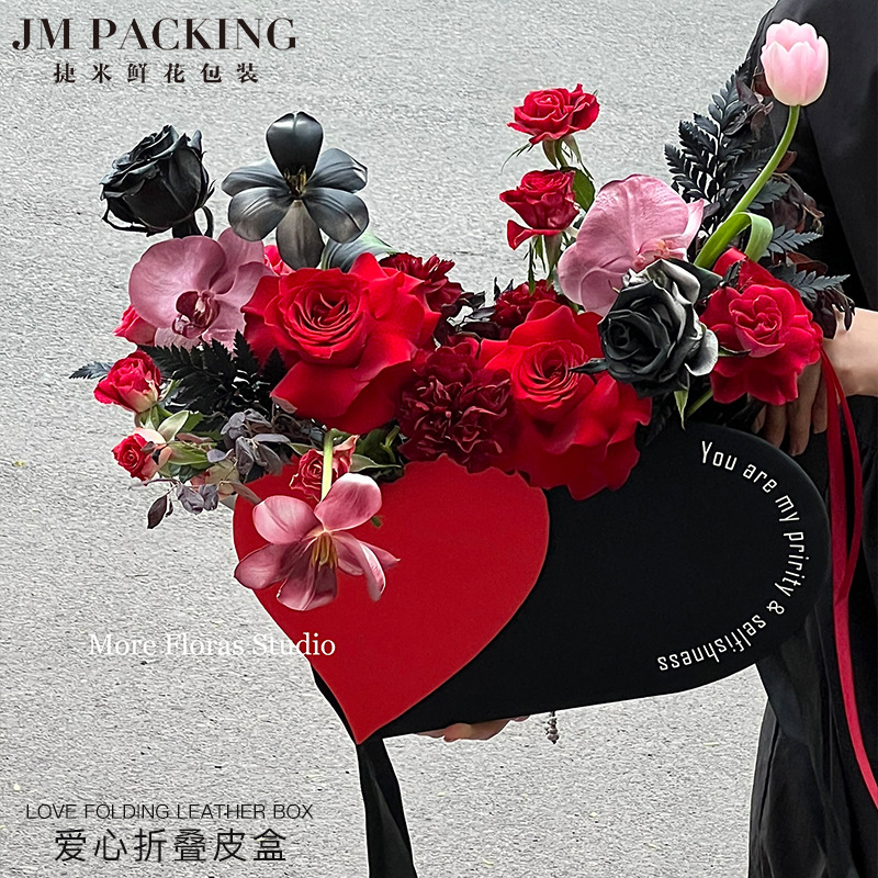 花のギフトボックスバレンタインデーの新しいタイプは折り畳み皮質の手提げ花の箱のハート型のギフトボックスの花の花束の包装が好きです。