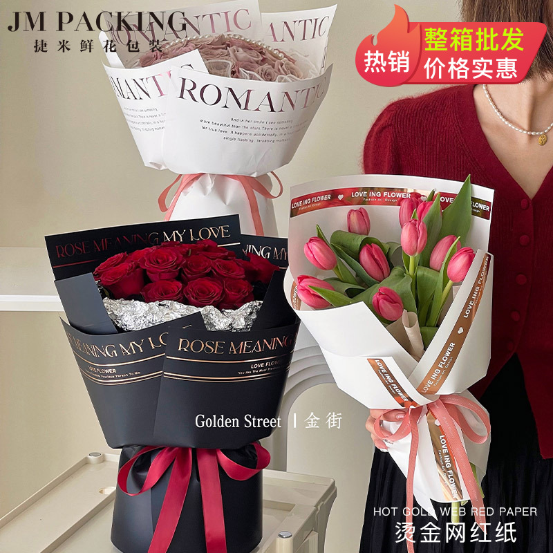 生花包装紙箔押し貴族シンプル紙全箱卸売り花芸材料花束包装紙花芸包花紙
