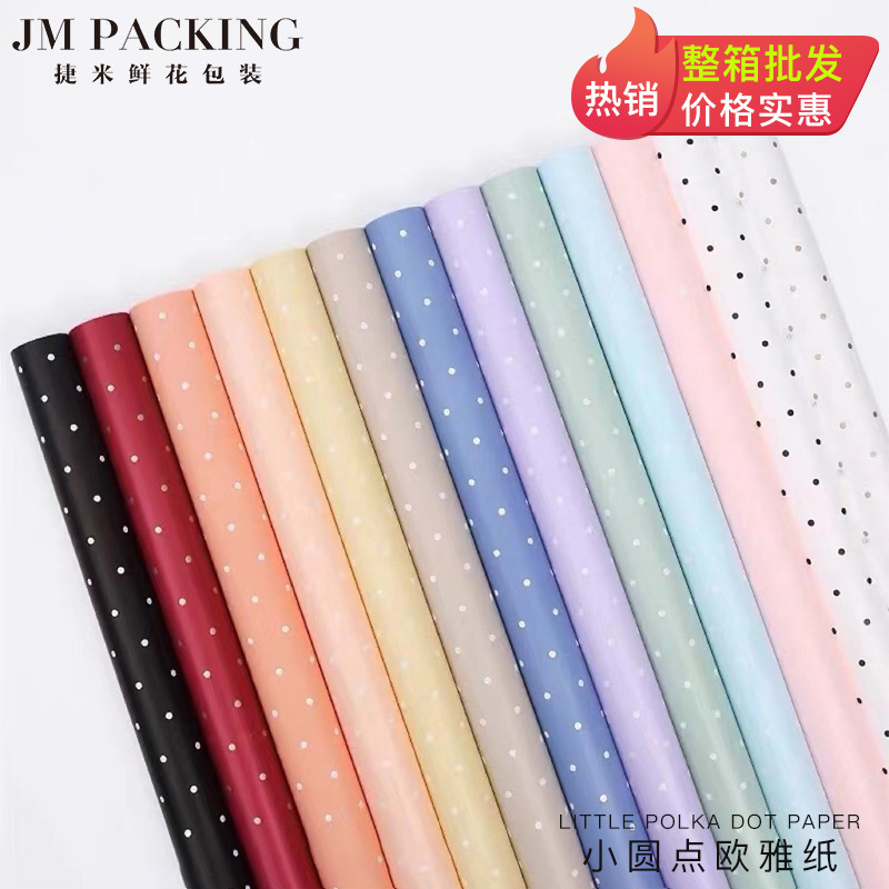 生花の包装紙の小さい丸い点の欧雅紙の箱の箱の卸売りの防水の花芸の材料の花束の包装紙は花の紙を包みます