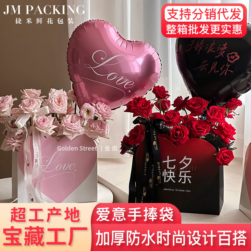 抱っこ袋バレンタインデー花芸資材ネット赤愛愛手花箱花屋花束包装材料花ギフトボックス