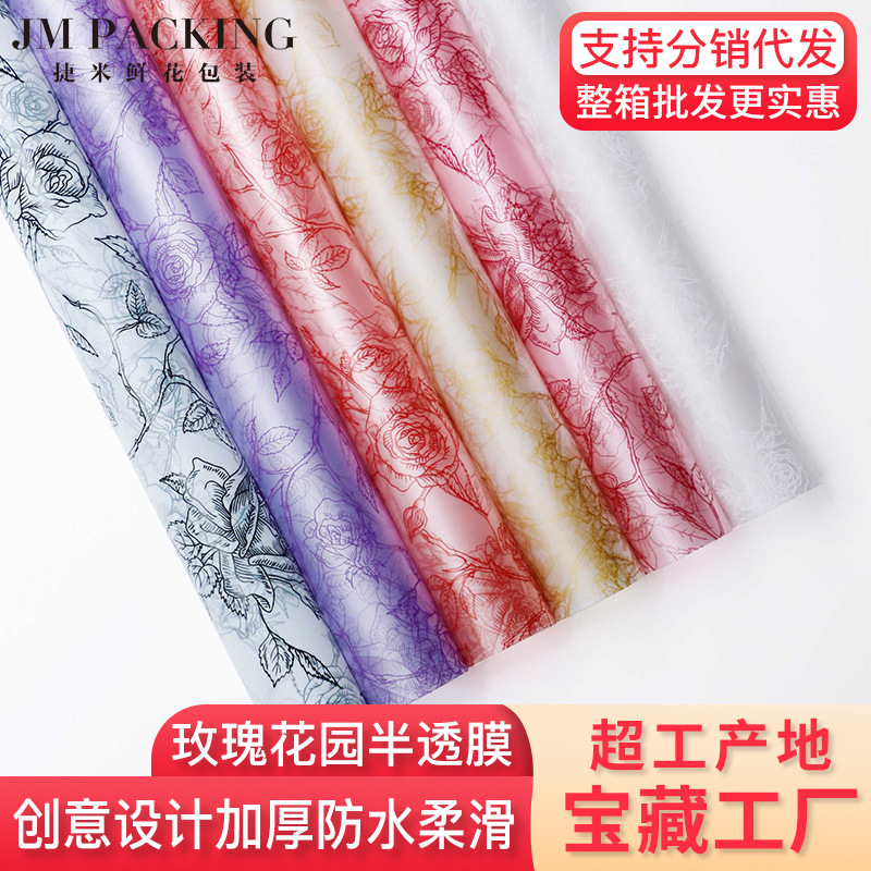 花束包装新型防水花芸包花紙バラ花園半透霧面花束紙花包装紙