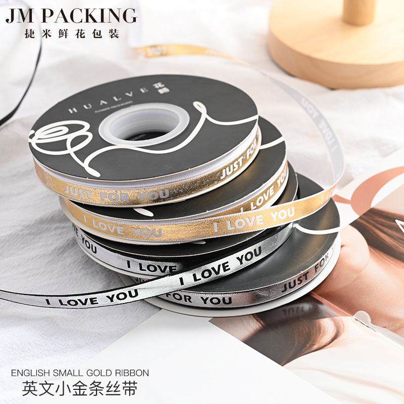 花束包装 花屋 生花 フラワーアート DIY素材 1cm ホットスタンプシルバー/ゴールド 英語文字 誕生日 ラッピングリボン