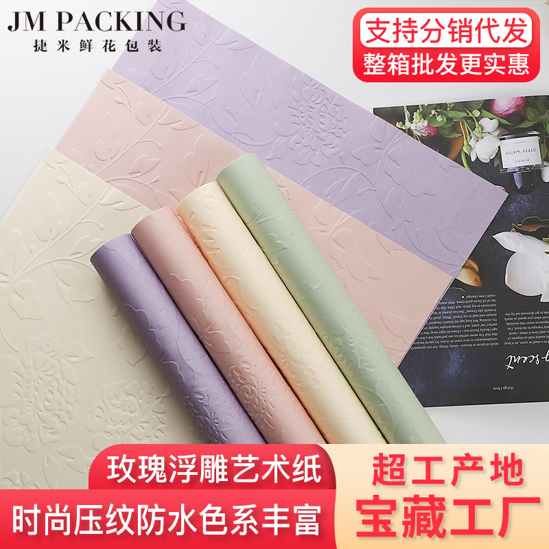 花を包む紙の卸売りの新型の防水は厚くて立体のエンボスのバラのレリーフの芸術の風華の紙の生花の包装の紙を厚くします。
