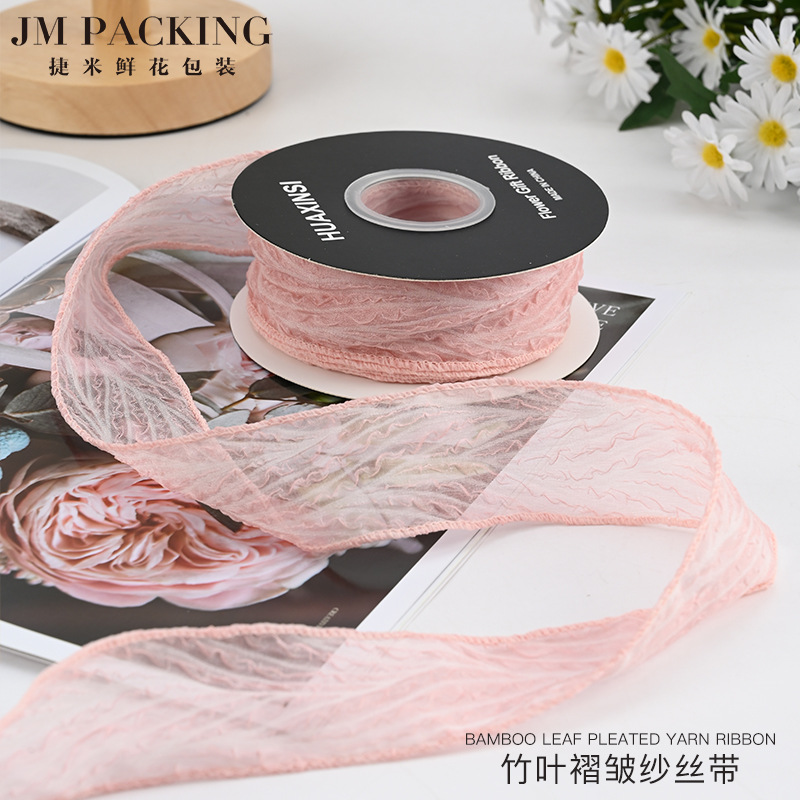 花を包むリボンの卸売りの高級な生花の贈り物の花束の包装の蝶結びの竹の葉のしわの糸のリボンのリボン