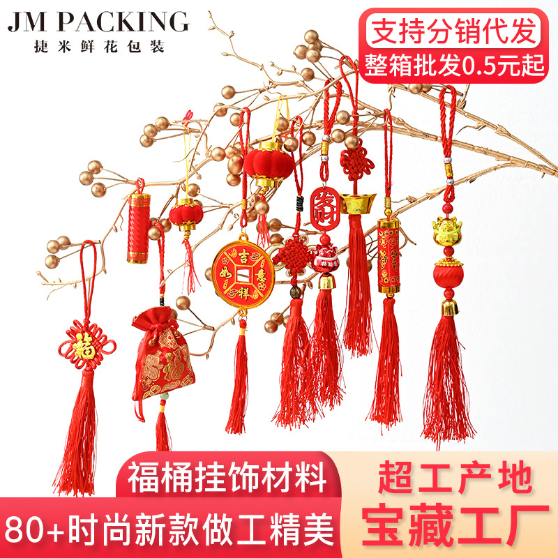 新年のペンダント2025蛇年装飾小中国結平安流蘇年夜花福桶部品旧正月掛け飾り