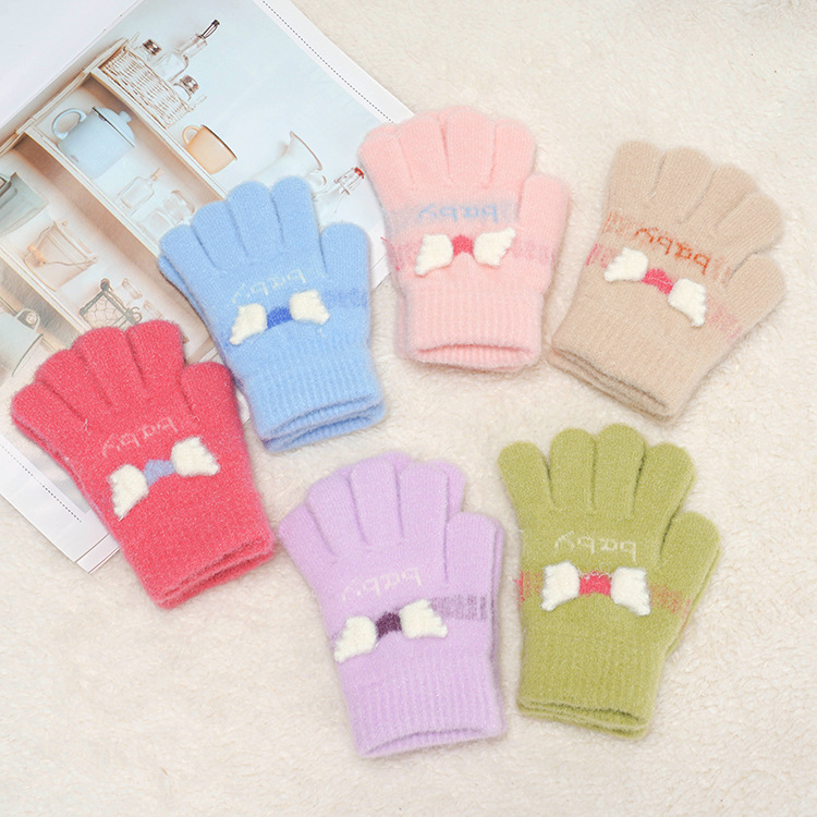 韓国の新型子供のニットの手袋の漫画のかわいい天使の男女の子供の赤ちゃんは冬の保温の手袋の卸売りを指します。