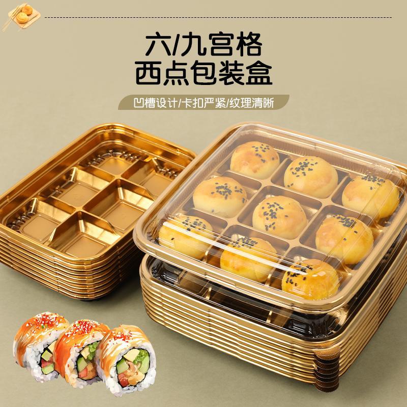 金色の九宮格菓子箱蓋付き、六個入り、九個入り、餅、パフ、豆餡入りパン、包装箱、菓子盛り合わせギフトボックス