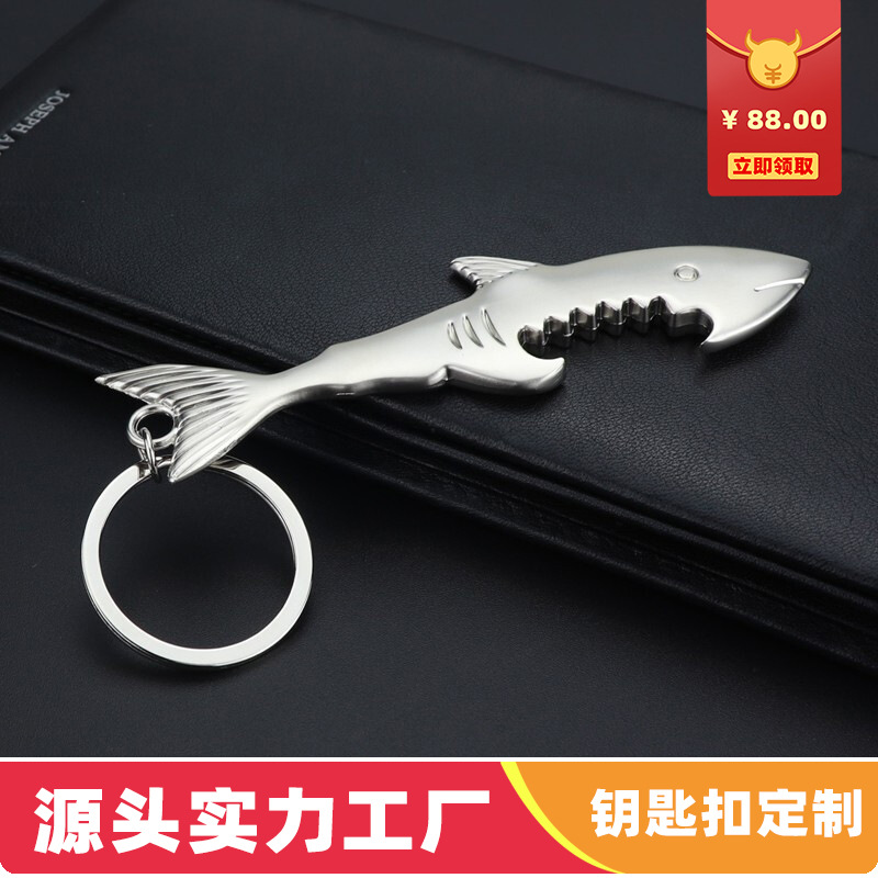 サメビール栓抜きキーホルダーカスタム金属クリエイティブ塗装ステンレスキーホルダー