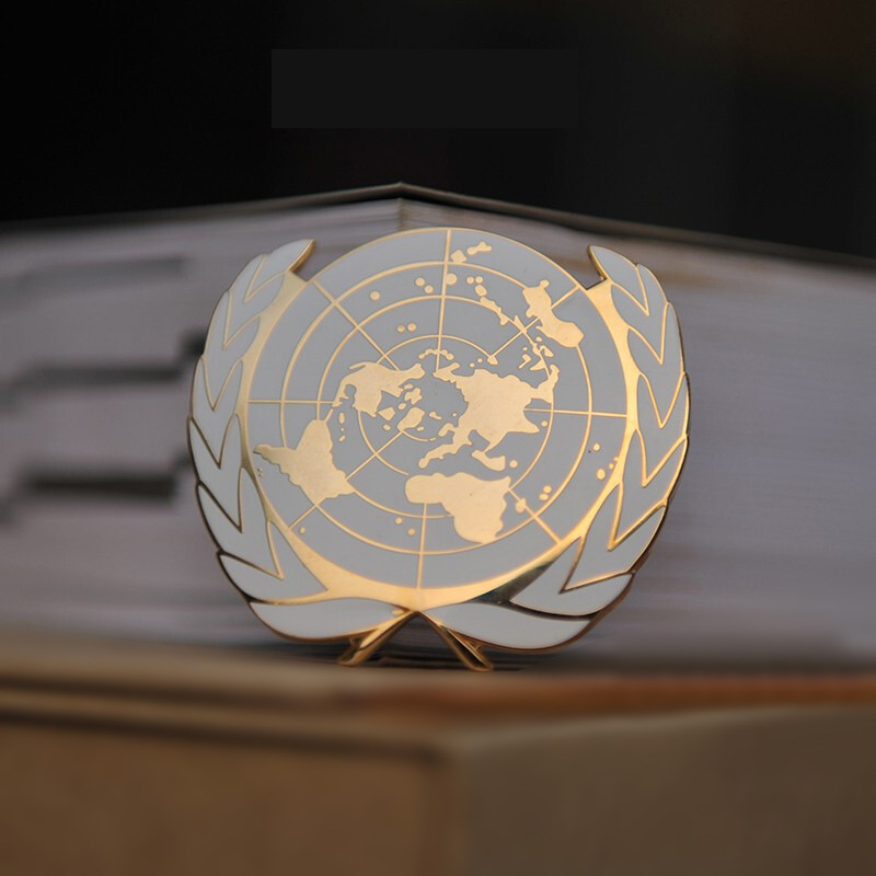 新型金属帽子章エナメル工芸国連記念章勲章企業活動はロゴ金属バッジを印刷できる