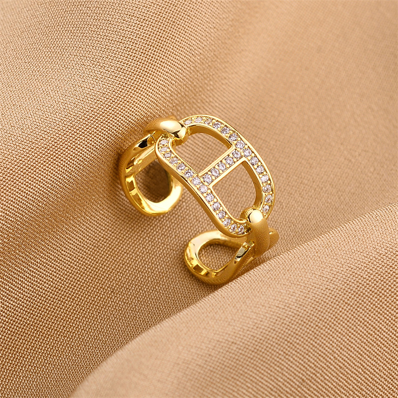 Hアルファベットの指の指輪ネットの赤いファッションの個性の小さい指輪の女性の潮の潮の小さい大衆の設計感の開口部は指輪を調節します。