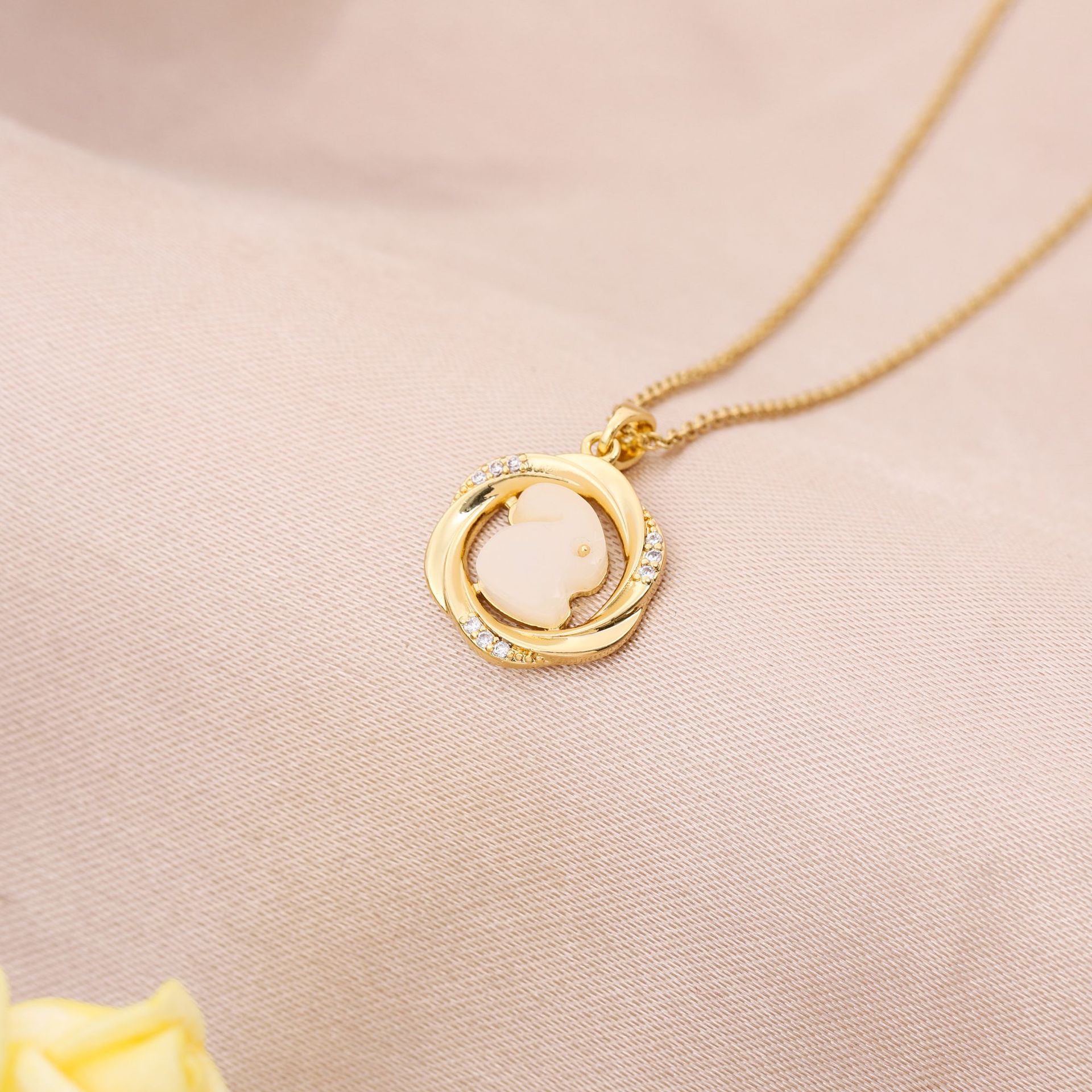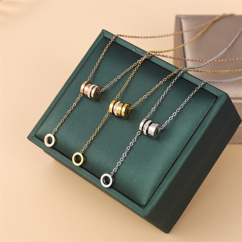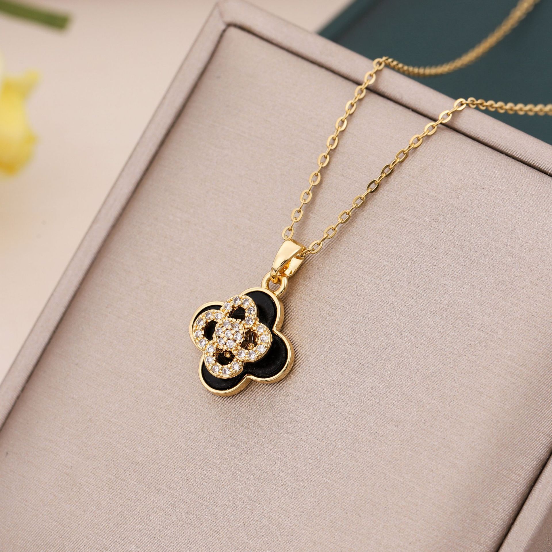 新型回転二重四葉草韓国版シンプルなマイクロジルコンペンダント軽豪華チタン鋼ネックレス鎖骨チェーン卸売り
