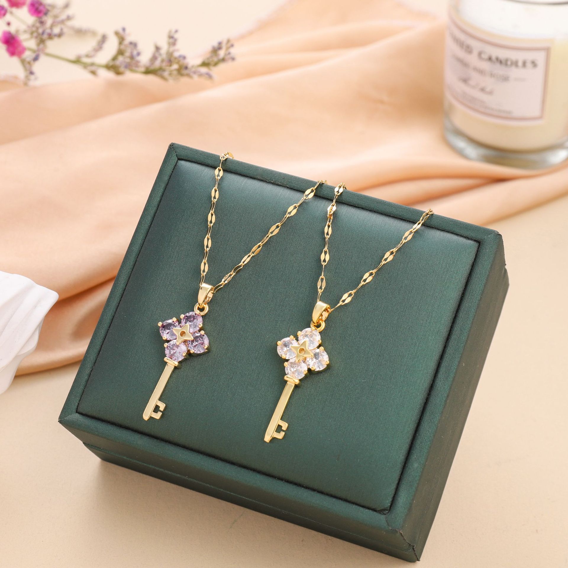 新型キーチタニウム鋼ネックレス女性生放送起爆金シンプル紫ジルコンネックレス高級感小衆鎖骨鎖