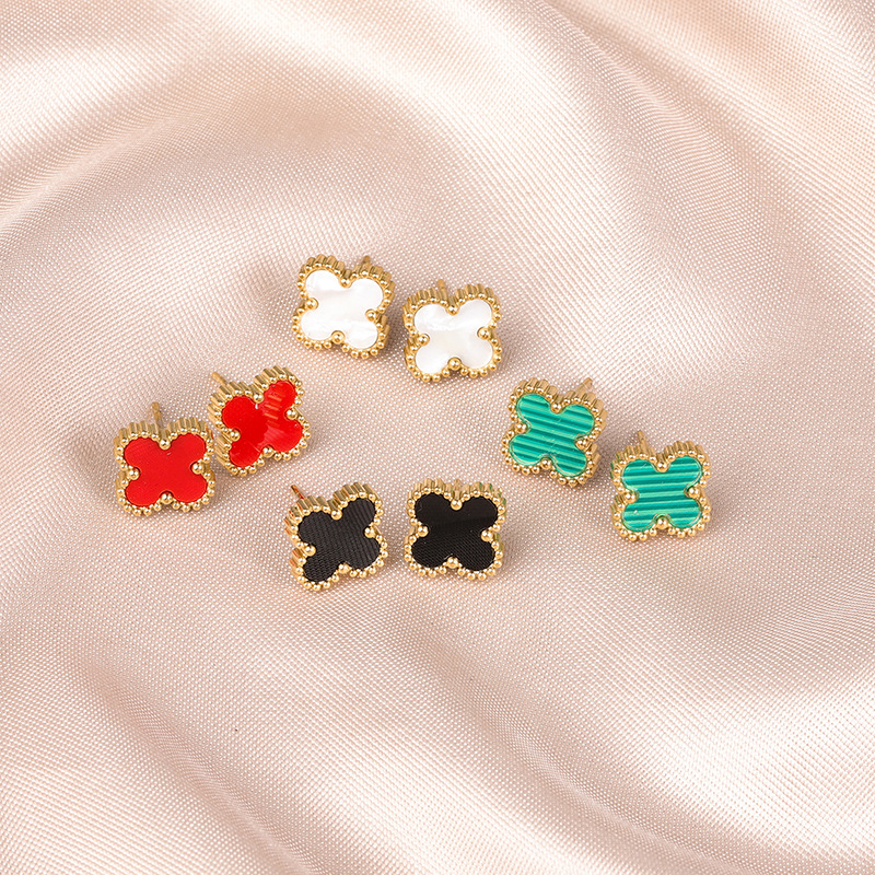 韓国ファッションチタン鋼四葉草貝母ピアス