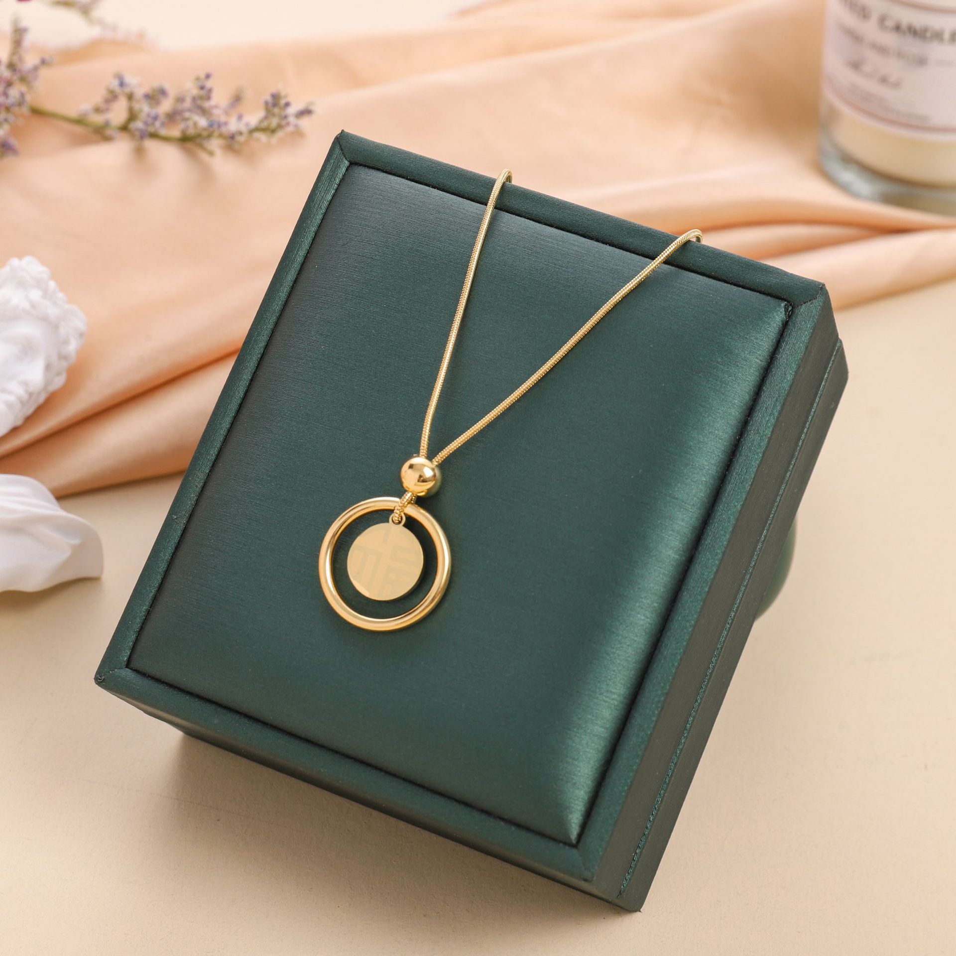 2023新型チタン鋼は色落ちしない18k金色福喜両面チタン鋼ネックレス女性ファッション中国風鎖骨鎖