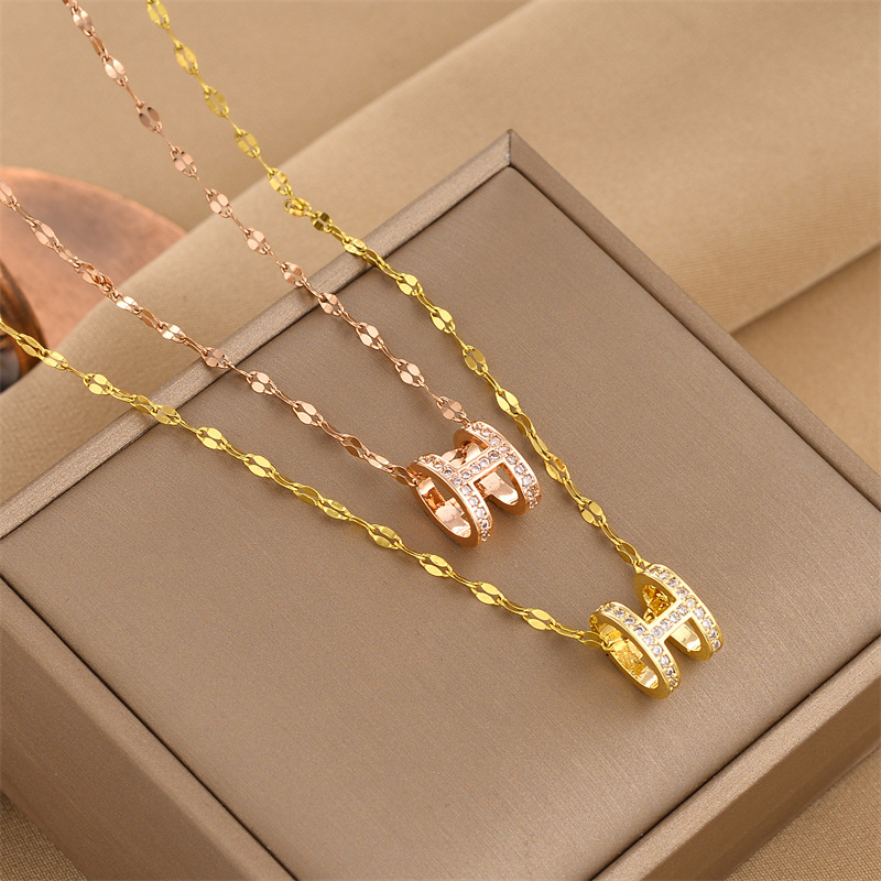 高级感満ドリルアルファベットhチタン钢ネックレス女性夏insシンプルでクールで色落ちしないネックレス女性アクセサリー卸売