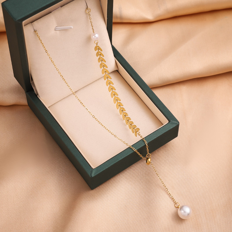 麦の穂の真珠のネックレスの女性のシンプルで小さい大衆のデザイン感のチタンの鋼のネックレスの女性の百合の創意の流行のアクセサリーの卸売り