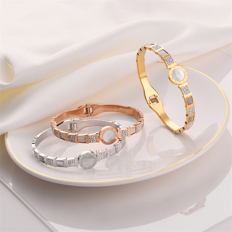 2023種類の国境を越えた電気商の起爆金ローマ字にチタン鋼のブレスレットを入れた女性バラ金は色あせない現物卸売り