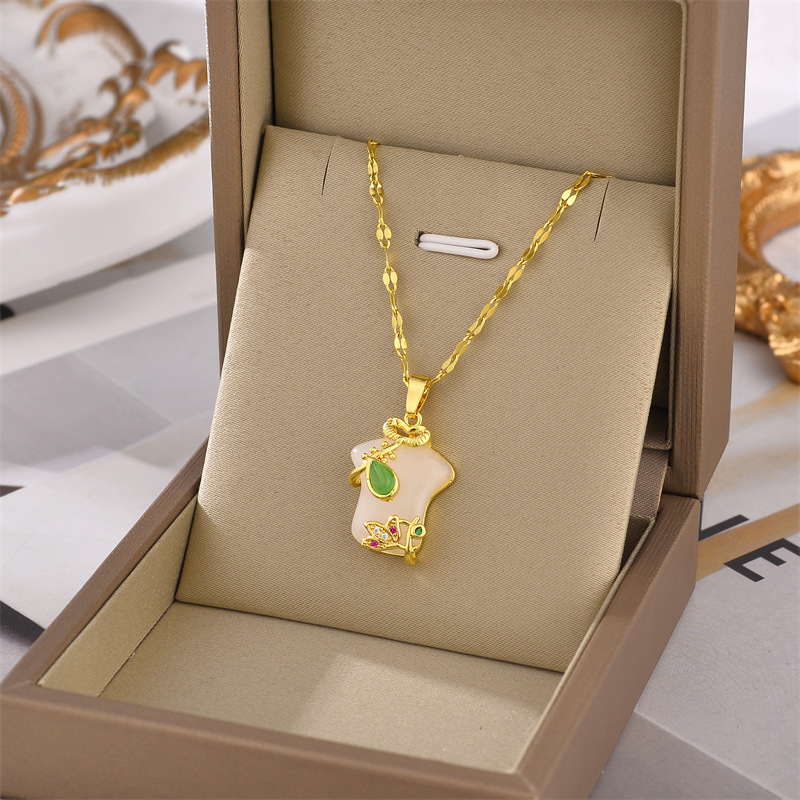 ネットの赤い新型のチャイナドレスのチタンのネックレスの女性の金の玉の民族の風の錦衣の玉の食の唇の鎖の鎖のチェーンのメーカー