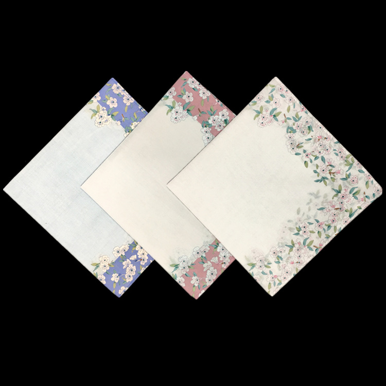 28 cm 60織綿レディース刺繍汗拭きハンカチレースハンカチ多花入り刺繍カラーハンカチ