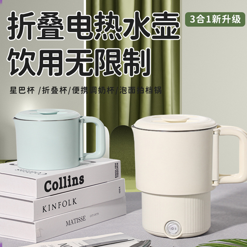 折り畳み湯たんぽ旅行携帯ポット保温一体mini小型一人電気ケトルステンレスクロスボーダー