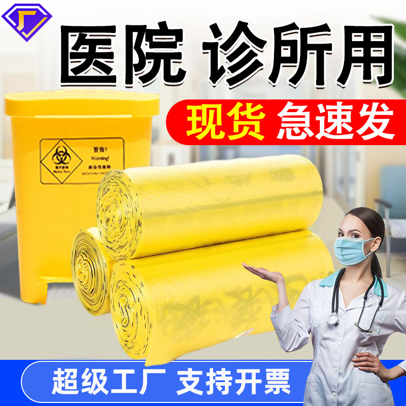 スポット卸売り使い捨て医療廃棄物ゴミ袋平口厚手ゴミ袋病院診療所黄色包装袋