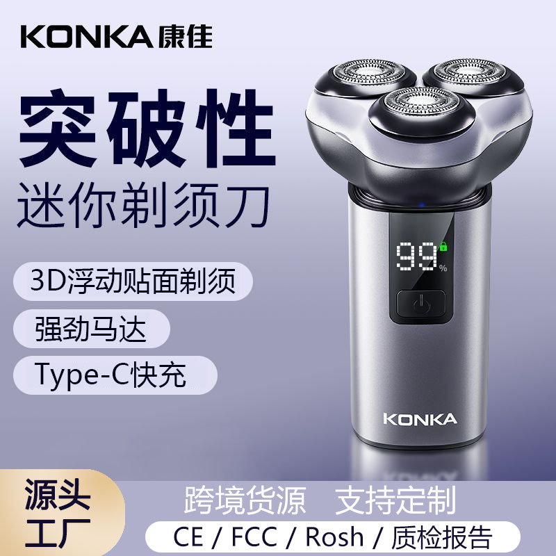 Konka 小型 3 ヘッド電気磁気ヘッドポータブル合金ハイパワーひげナイフ充電式モデル