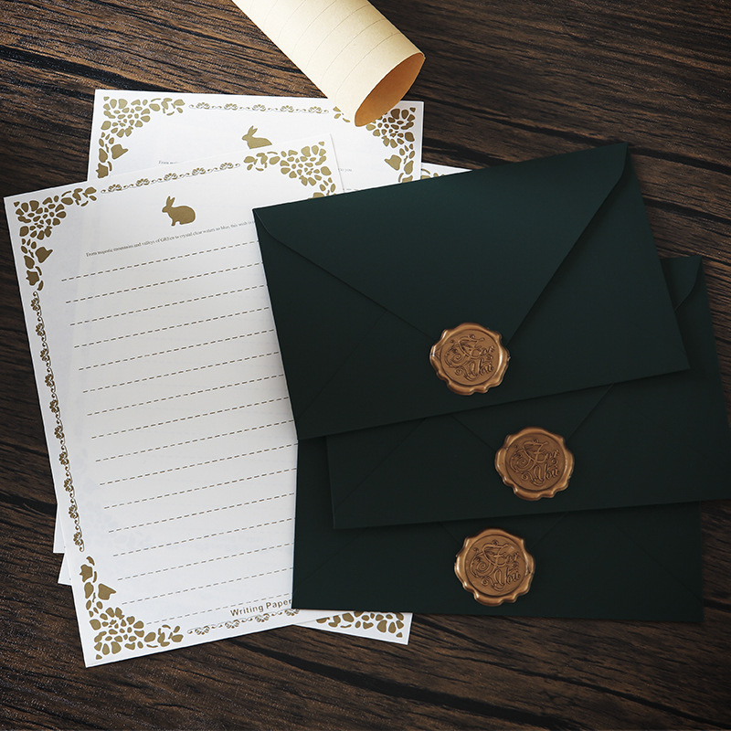 触感墨緑封筒軍緑火漆封筒便箋セット祝日プレゼント祝福復古風ラブレター便箋