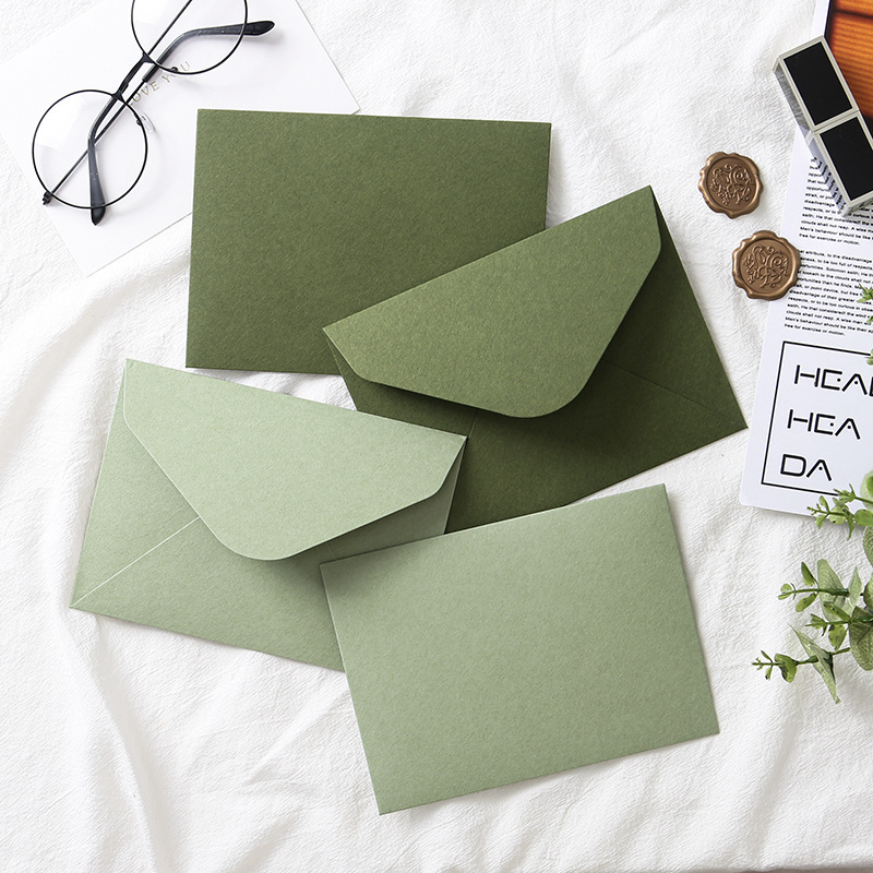 牛油果緑封筒便箋セットオリーブ墨緑復古風ラブレター招待状はがき収納火漆封筒