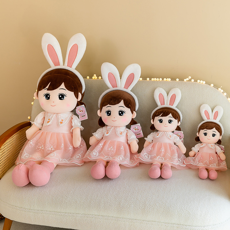 新しい変身ウサギの女の子のぬいぐるみの家にはぬいぐるみの子供の誕生日プレゼントがあります。